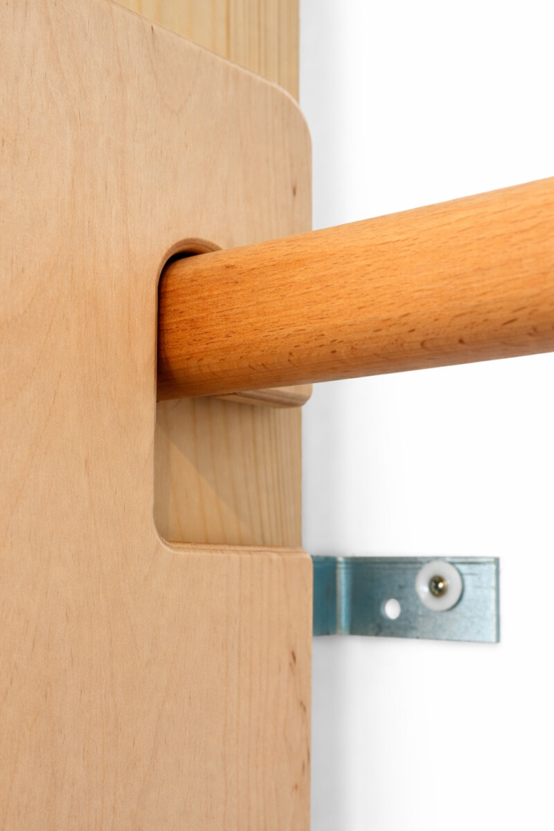 Шведская стенка изготовлена с использованием новейших технологий, обеспечивающих гладкую поверхность и точно подогнанные элементы.