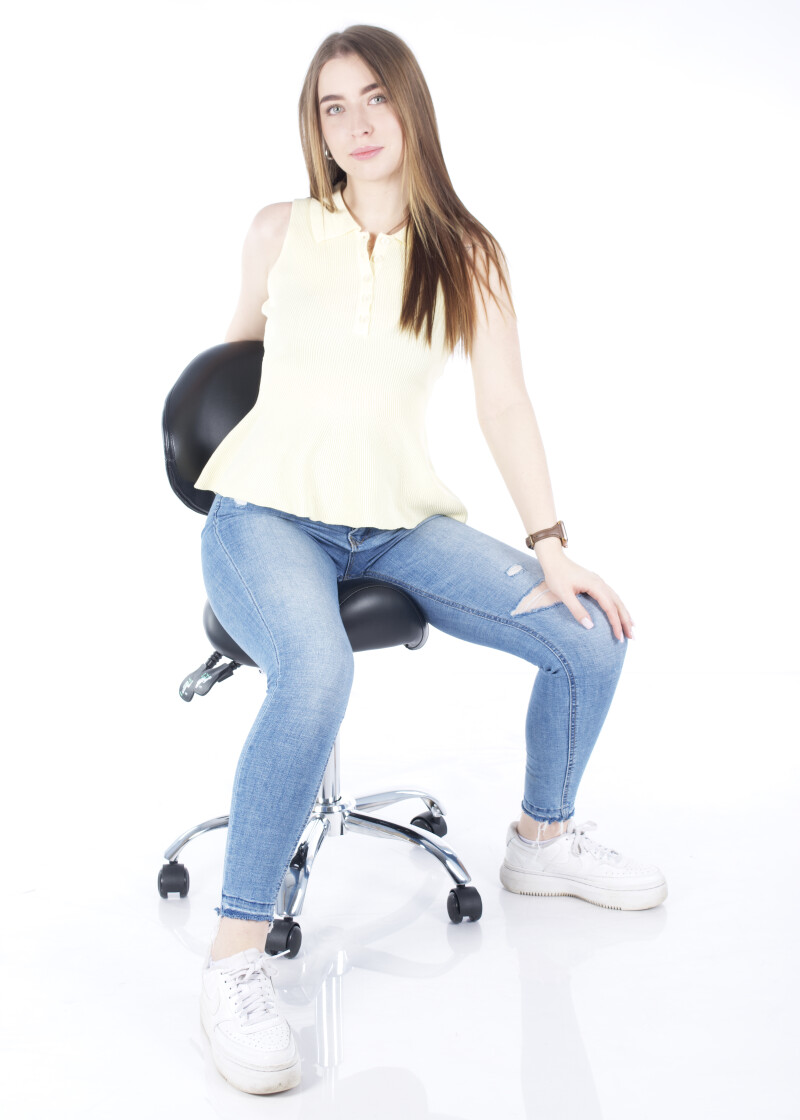 Долгое нахождение в положении сидя приводит к неправильному расположению позвоночника, из-за чего человек ощущает дискомфорт в области таза, боль в спине, затекание ног. Новая модель мебели для косметолога – стул-седло помогает позвоночнику принять естественную форму. Мастер чувствует себя комфортно во время проведения процедур и меньше устает от работы.